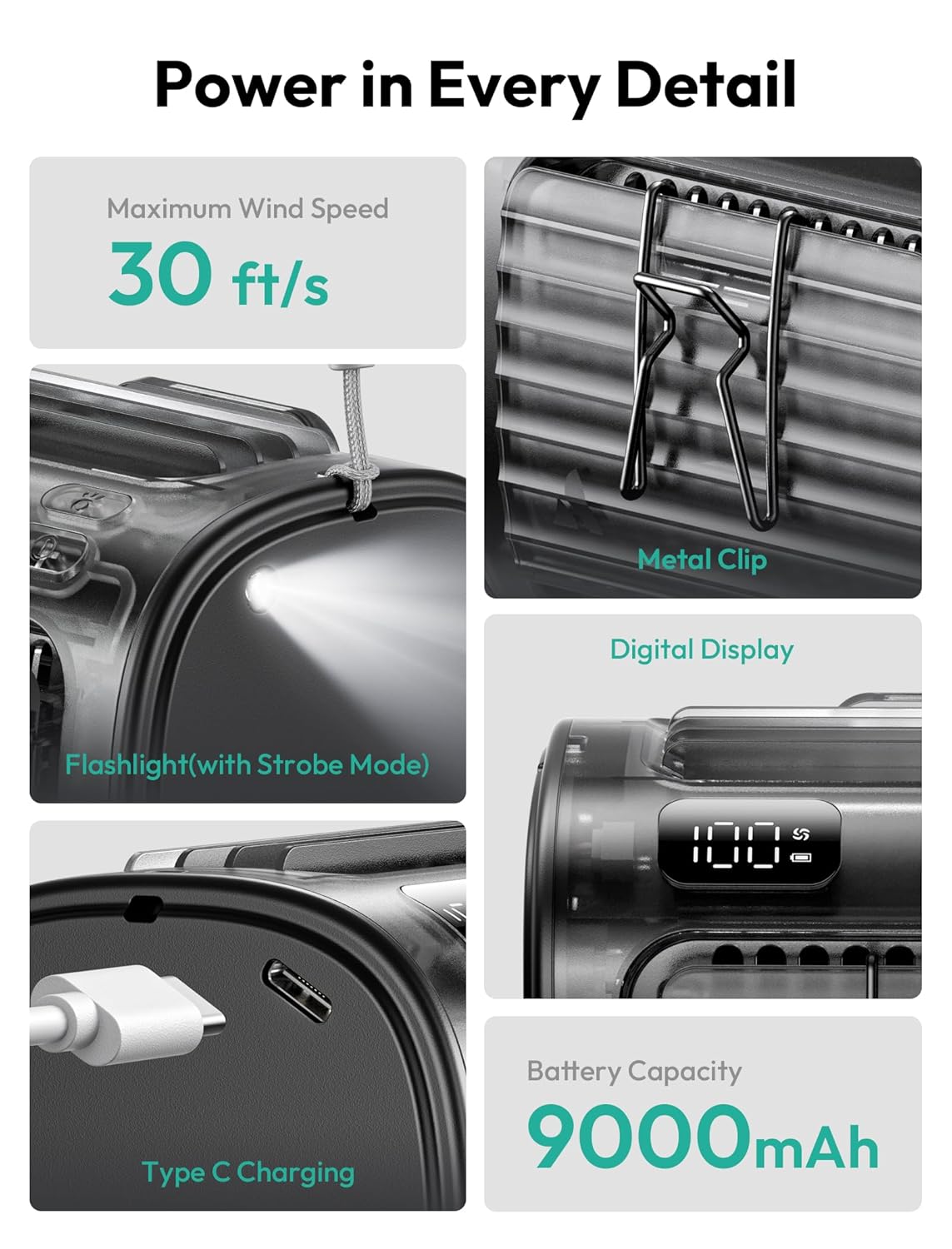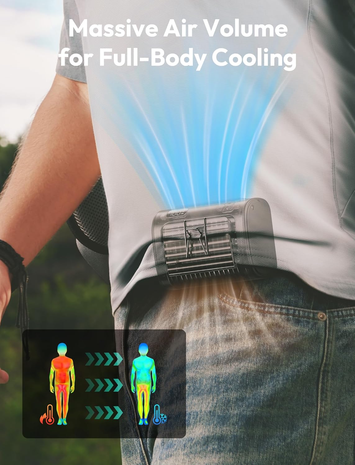• Hands-Free: Easily clips to your waist for portable cooling wherever you go—ideal for work, commuting, outdoor chores, or travel.
