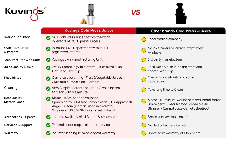 • WARRANTY: Kuvings Juicer comes with longest warranty of 12 years on motor. Ensuring Complete Peace of Mind.