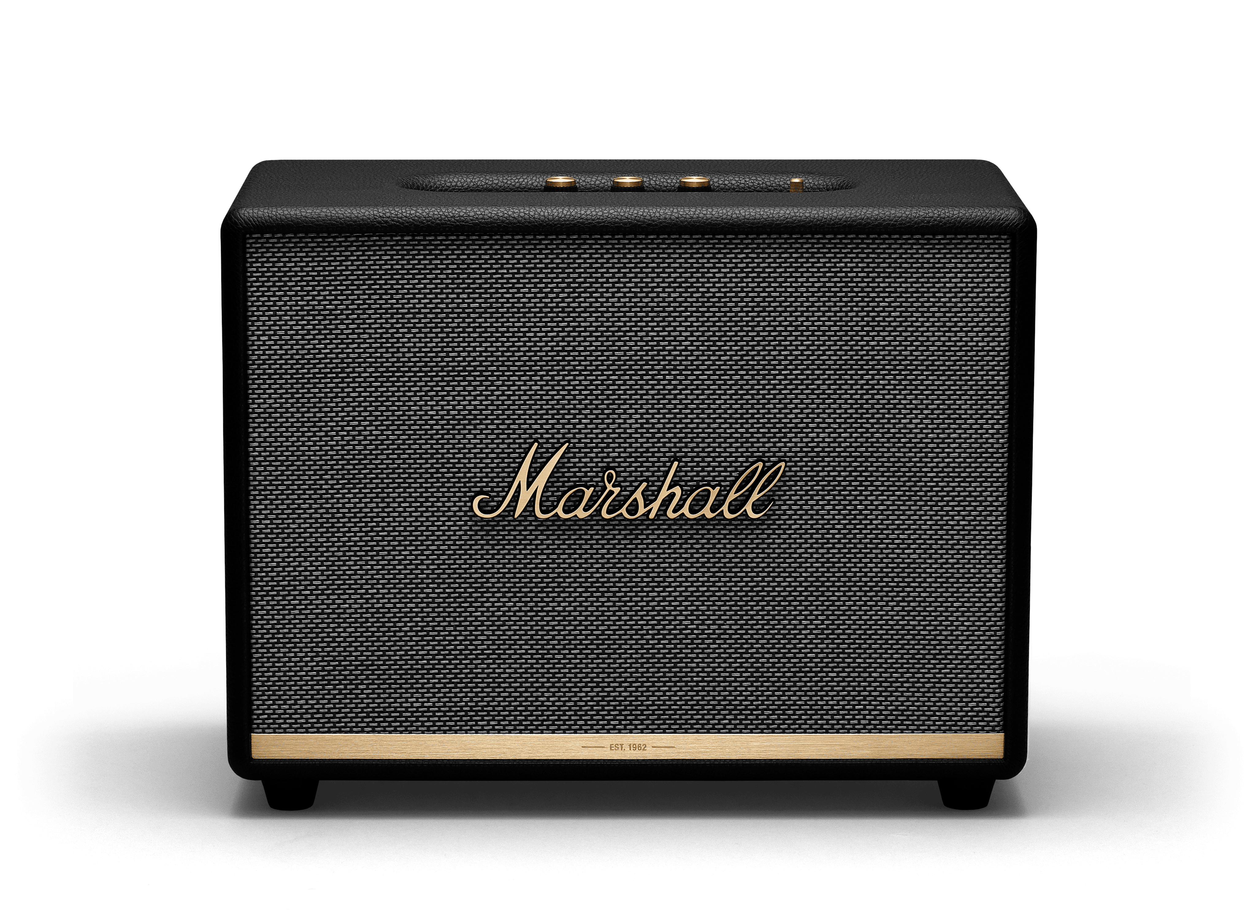 Classic Marshall details such as a textured vinyl covering, salt & pepper fret and the iconic script logo adorn this speaker’s sturdy wooden frame. Located on the front of the speaker is a brass plate, etched with the establishment date of 1962 – a subtle nod to the brand’s heritage and over 50 years of loud. You’ll want to proudly display this speaker in any room.
