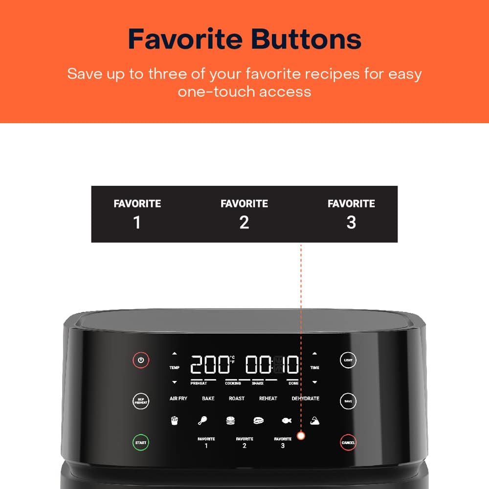 • EASY TO CLEAN: PFOA/BPA-free, non-stick air fryer basket and cooking tray are dishwasher-safe making clean up quick and easy.