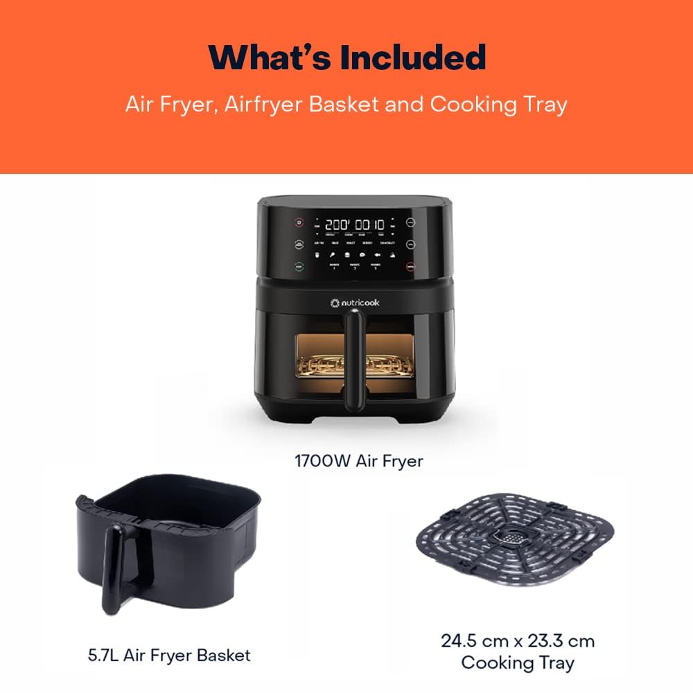 Nutricook 5.7L Air Fryer (2025) with 100% Toxin-Free Ceramic Coating—No PTFE PFAS PFOA or Microplastics Clear Window Light & Large Basket Cook with Little or No Oil | 1500W 10 Presets 2-Year Warranty